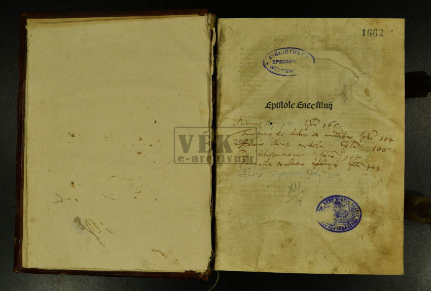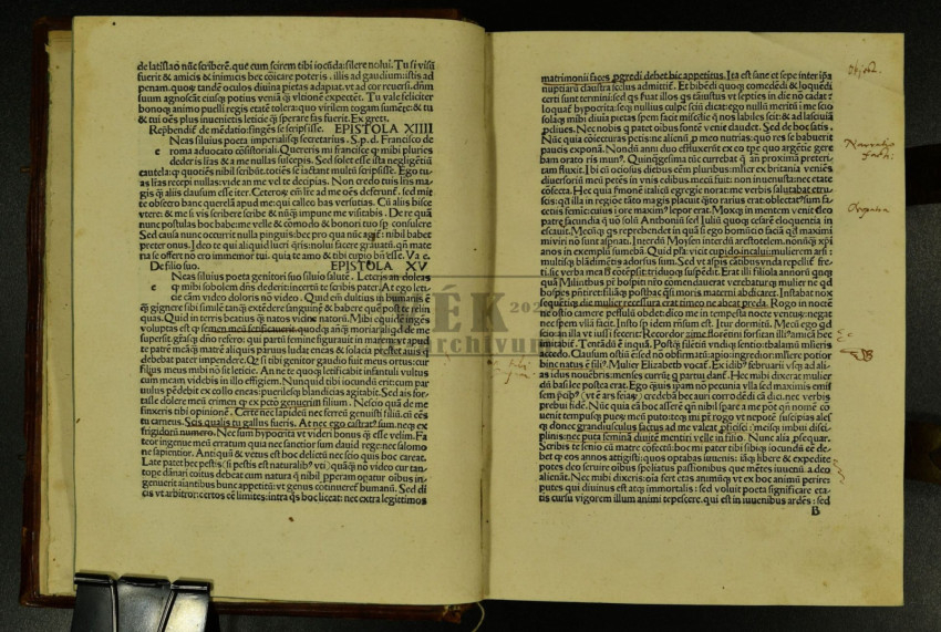 Könyvészeti adatai: Pius II. papa: Epistolae Familiares. Ed. Nicolaus de Vuile. Nünberg : Anton Koberger XVI. Kal. Jun. 1496. 4° 348 ff.