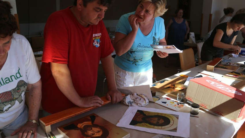 Máriapócson egyhetes ikonfestő táborban tanulták magát a technikát az érdeklődők. Férfiak és nők, tizenévesek és nyugdíjasok kaptak útmutatást a deszka előkészítésétől az alapozáson át az alakok megrajzolásáig, hogy vasárnapra elkészüljenek a képek. Ugyanazzal a nyitottsággal és alázattal tanult a táborban sokadszor részt vevő, mint aki először jött el. „Életre szóló tanulás” – mondták többen is.