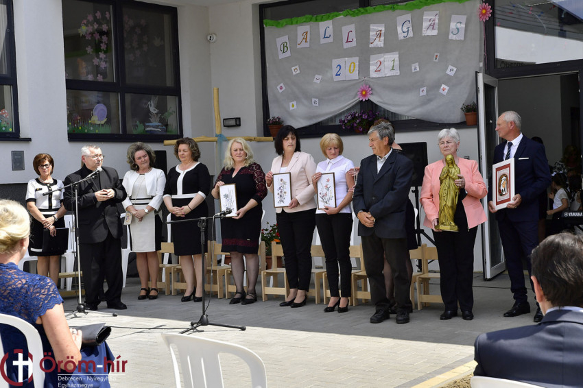 Az ünnepségen Rácz Tiborné intézményvezető köszöntőbeszédében úgy fogalmazott: István király példáját követve, aki Szűz Mária oltalmába, ezzel Isten kezébe, védelmébe helyezte az országot, a nyírbátori intézmény legfiatalabb egységét, az egyéves óvodát is a Boldogságos Szűz Mária oltalmába ajánlották. Az intézményvezető kérte Szűz Mária közbenjárását, hogy segítse az itt dolgozók és a gyermekek hitbeli, lelki növekedését.