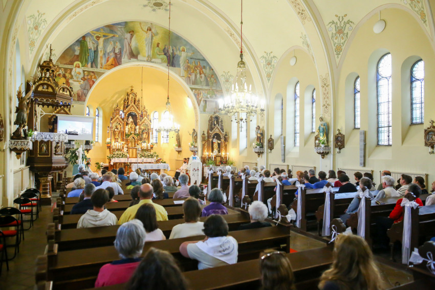 Ez utóbbi helyszínen a kerepesi hívők már a zarándokok érkezése előtt „beimádkozták” a templomot. A szentmise elején Martos Levente Balázs – aki két papnövendékkel együtt érkezett a szertartásra – köszöntötte a kerepesieket és azokat, akik az Élő rózsafüzér zarándoklat keretében érkeztek meg a Szent Anna-templomba, és gyaloglásuk során „viselték a nap terhét és a Nap hevét”.