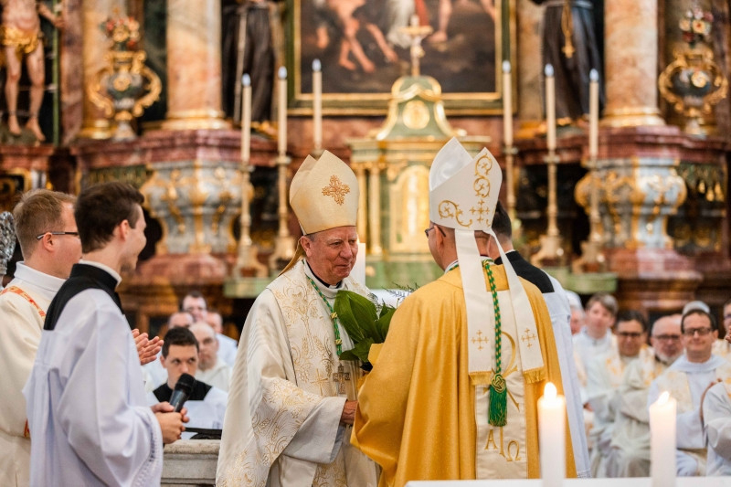 Végül újmisés áldásban részesítették a megyéspüspököt. Megható pillanat volt, amikor – a hagyományt követve – a püspök kezet csókolt fiatal paptestvéreinek. A zárókönyörgésben a püspök a Szentlélek ajándékait kérte az újmisések számára, és azt, hogy minden áldozatuk legyen Krisztusnak tetsző, életük pedig áldás azok számára, akiket szolgálnak.