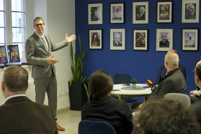 „Mind a négy tér megújítása a hallgatóknak köszönhető, hallgatói ötletekből, hallgatói gondolatokból állnak össze ezek a terek. Itt vagyunk például a Teológus Kávéházban, aminek az ötlete egy hallgatótól származik, beszélgetések, viták, egyéb programok számára. Ami a különlegessége ennek a térnek, hogy a falon nem családi képek, hanem nagy teológusok portréi láthatók. Úgy gondolom, hogy aki belép ebbe a térbe, picit úgy érezheti magát, mintha ő maga is teológus lenne, és bízom benne, hogy leveszi a polcról egy nagy teológus művét, vagy talán később maga is a teológia tanulására adja a fejét. Aztán itt van a szabadulószoba, amit azért alkottunk meg, hogy azoknak is hozzáférhetővé tegyük a teológiát, akik talán kevésbé járatosak benne, akik nem hallgattak még teológiát, de szívesen foglalkoznának vele. A szabadulás élményét élhetik át az Exodus szabadulószobán keresztül. A kápolna, a Szent Pál-imaterem, ami a főiskola csúcsán, a legfelsőbb szinten található, az a hely, ahol hallgatóink rendszeresen összegyűlnek. Délben imádkoznak, énekelnek, Szentírást olvasnak. Én úgy gondoltam, hogy megfelelő környezetet, megfelelő teret kell létrehozni, hogy ott találkozhassanak minden délben, és ezt szerencsére meg is tudtuk valósítani” – fogalmazott az intézmény vezetője.