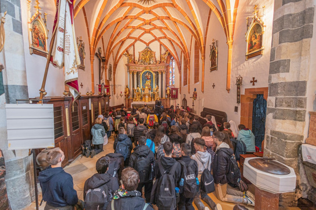 Güssingbe érve megnézték a bazilikát, ahol később misén is részt vettek. Boldog Batthyány-Strattmann László dédunokájával is találkozhattak, aki sokat mesélt dédapjáról. Lemehettek a kriptába, ahol megtekintették a Batthyány család elhunyt tagjainak sírját, majd felmentek a kastélyhoz, ahol többek közt a kápolnában is gyönyörködhettek.