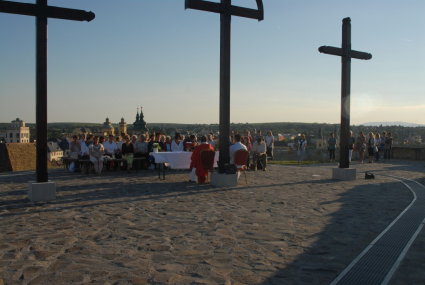 A nyitó szentmisét Koós Ede, az egri Érseki Papnevelő Intézet prefektusa celebrálta, aki elmélkedése középpontjába a keresztények missziós küldetését helyezte. „Azért is különleges a mai nap – fogalmazta meg –, mert emberemlékezet óta nem tartottak szentmisét a keresztek tövében, noha a szabad ég alatt Isten legszebb és legnagyobb templomában lehetünk.” Reményét fejezte ki, hogy a virrasztás felhívja a városban élők, az idelátogatók, az itt dolgozók vagy tanulmányaikat folytatók figyelmét ezeréves kereszténységünkből fakadó küldetésünkre, és a Szentlélek kiáradásának köszönhetően missziós tevékenységünk megújítására.