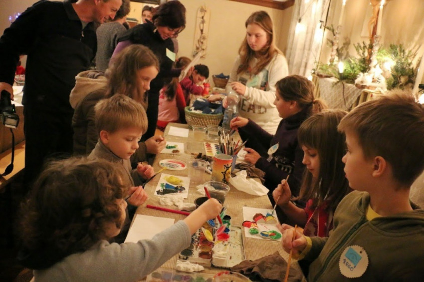 Négy órától a plébánia épületében családos játékokkal, adventi ajtódísz és mécses készítésével folytatódott a program. A plébánia úgy várta az egyházmegye számos pontjáról érkezőket, mint egy igazi nagycsalád a távolban élő gyermekeit: meghitten, szeretettel, ünneplőbe öltözve. Az egész este is úgy telt, mint egy bensőséges családi ünnep: míg a gyermekek a kisszobában játszottak, a szülők és nagyszülők a nappaliban társalogtak terített asztal mellett.