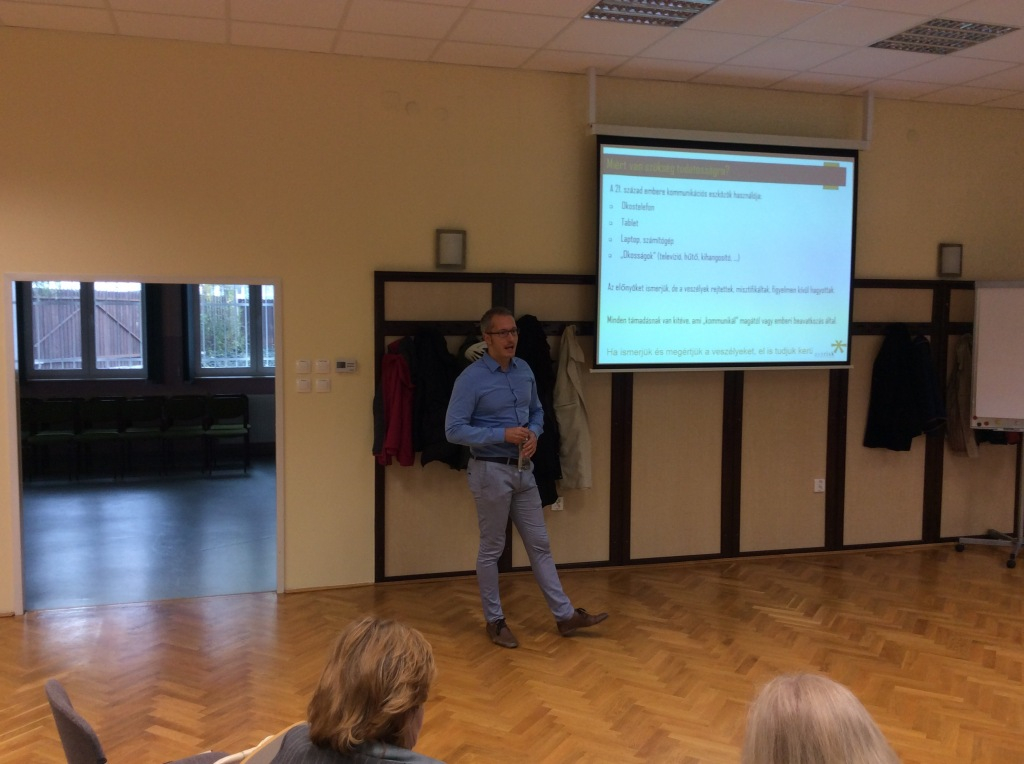 Az egész délelőttös képzés két részre tagolódott. Az első másfél órában a mindennapi számítógép-felhasználók számára hasznos információk kerültek bemutatásra a következő kérdéseken keresztül: Miért és hogyan kell a számítógépen tárolt információkat védeni? Milyen veszélyek fenyegetnek, amikor az internet világában e-mailek, reklámok, megkeresések érkeznek nap mint nap? Hogyan kerüljük el a nem kívánt következményeket, mint például a vírusok, kémprogramok, adatok ellopása, nem kívánt tartalmak terjesztése a saját számítógépünkön keresztül? Mikor forduljunk szakemberhez?