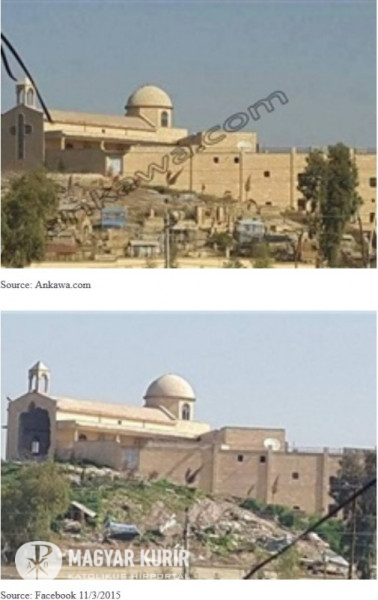 A Szent György (Mar Kurkis)-kolostor a rombolás előtt és után