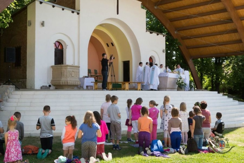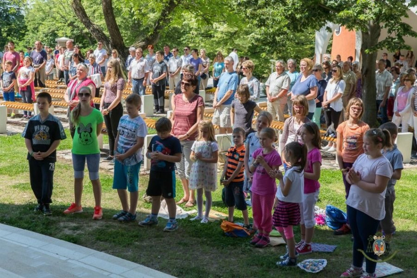 A szabadtéri oltárnál bemutatott püspöki szentmise után játékos feladatok várták a hittanosokat. Célba dobás, kötélhúzás és egyéb ügyességi feladatok mellett a liturgikus ismeretekre is szükség volt a megoldáshoz. A sikeres teljesítésért a gyerekek gyöngyöket kaptak, amelyeket a feladatok végén egytizedes rózsafüzérré fűztek össze. A szülők eközben Nagy Péter, a Pécsi Egyházmegye közoktatási munkatársa előadását hallgathatták a templomban.