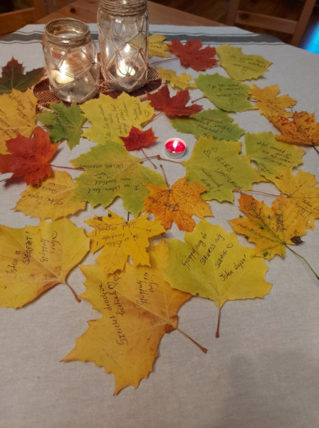 Fogjunk össze sokan, és segítsünk minden Covid-osztályon fekvő betegnek legalább egy színes falevéllel, ha a kórházi vezetőség is engedélyezi, hogy az őszi elmúlásból a fény felé fordulva az árnyék mögéjük kerülhessen!