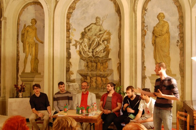 Simon Katalin gyűjteményvezető rövid köszöntője után Fűzfa Balázs egyetemi docens, irodalomtörténész mutatta be röviden a slam poetry műfaját. Ezt követően gyakorlati példával is szemléltette az elmondottakat, a Szeptember végén című vers egy korábban átírt változatát olvasta fel a vendégeknek.