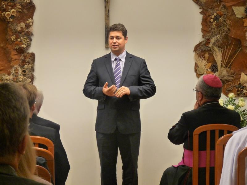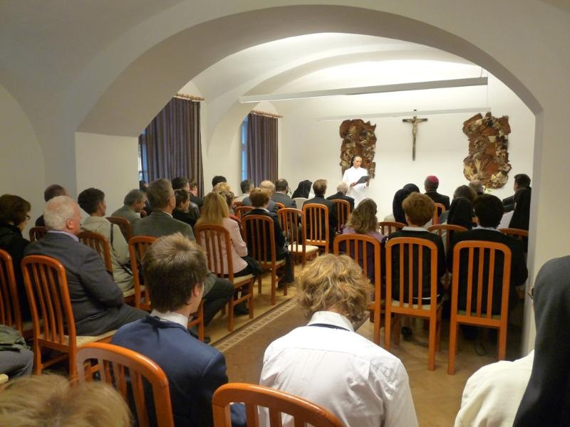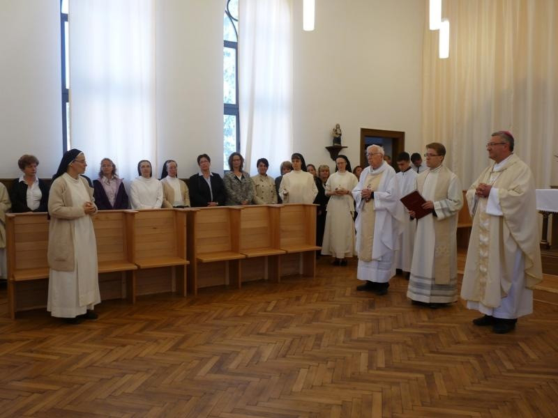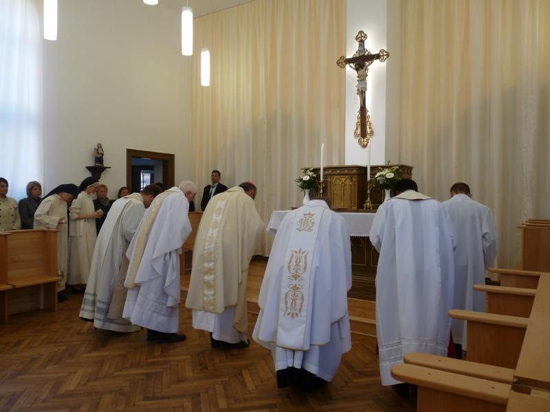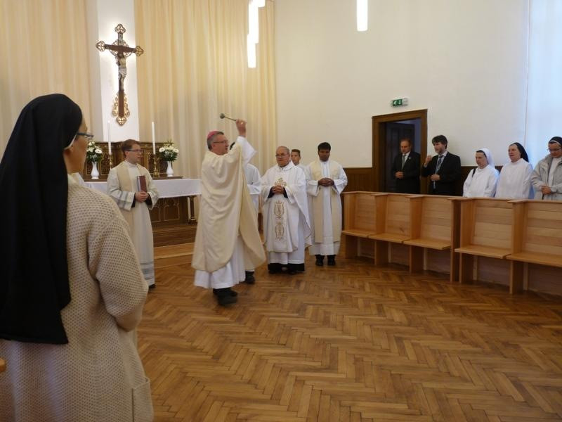 Az ünnepség délután három órakor a kápolnában kezdődött. A helyiség már a szerzetesrendek szétszóratása előtt is oratóriumként működött, a nővérek ott zsolozsmáztak, a kommunizmus éveiben pedig hittanórára, majd különböző szakkörökre gyülekeztek ide a kőszegi fiatalok. Veres András szombathelyi megyéspüspök megáldotta a kápolnát, amely most visszakapta eredeti funkcióját: ismét az imádság helye lesz a gimnazisták számára, akik ez alkalommal a zenei szolgálatot vállalták.