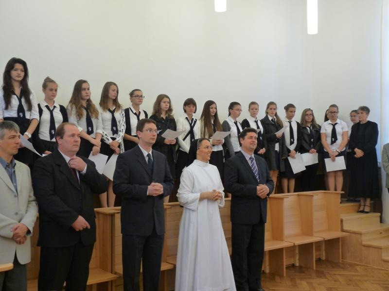 A domonkos nővérek általános főnöknője, Deák Hedvig beszédében megköszönte mindazok anyagi vagy lelki segítségét, akik hozzájárultak ahhoz, hogy a nővérek számára a gyökereiket jelentő épület – hiszen a kongregációt ezen a helyen alapították 1868-ban – most a katolikus nevelés szolgálatába állhatott. Veres András megyéspüspök ezután rövid imádság keretében megáldotta a kollégium termeit.
