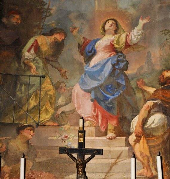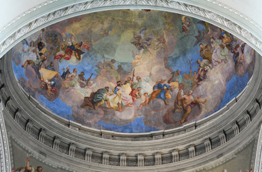 Jernyei Kiss János előadásában a székesegyház 18. századi freskóegyüttesének képi programjára fókuszált, s többek között kiemelte: „A székesegyház Maulbertsch festette freskóegyüttesének középpontjában a Mária látogatását ábrázoló főoltárképen az ég felé forduló, hálaénekét zengő Mária áll. Átszellemült alakja szoros tematikus kapcsolatban van a Szentháromságot imádó mindenszenteknek a kupolában megjelenő képével, hiszen a Magnificatban Isten országának eljövetelét és önnön megdicsőülését énekli meg, pontosan azt, amit a mennyezeti freskó ábrázol. A Szűz tehát a vizitáció jelenetében egy jellemzően tridentinus szerepben – a vallásos tapasztalat keresésében példát nyújtva – mint elragadtatott látnok tűnik fel. A főoltárkép így a hagyományoktól eltérően nem a templom címünnepét (Nagyboldogasszony) jeleníti meg, hanem összetettebb, általános hitigazságokra intő és hívői viszonyulásra tanító pasztorációs szerepet tölt be.”