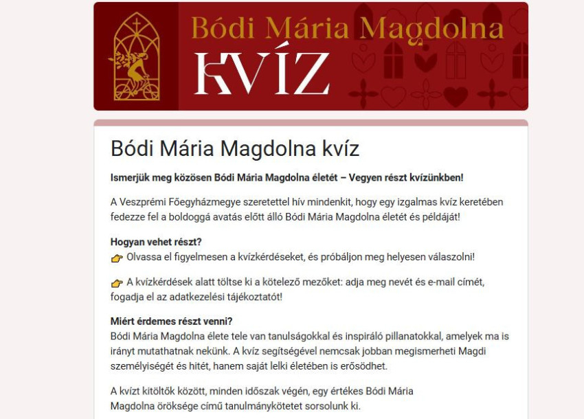 Mindenkinek örömteli játékot és sok sikert kívánunk!” – hívogat a kvízre a Veszprémi Főegyházmegye.