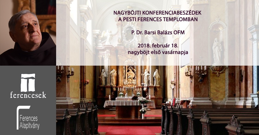 Hamvazószerdán elkezdődött a nagyböjti szent időszak, amelyben Jézus Krisztus negyven napi böjtölésére, majd kínszenvedésére emlékezünk. Barsi Balázs OFM minden évben megtartja hagyományos nagyböjti konferenciabeszéd-sorozatát, amely idén február 18-án, nagyböjt első vasárnapján veszi kezdetét.