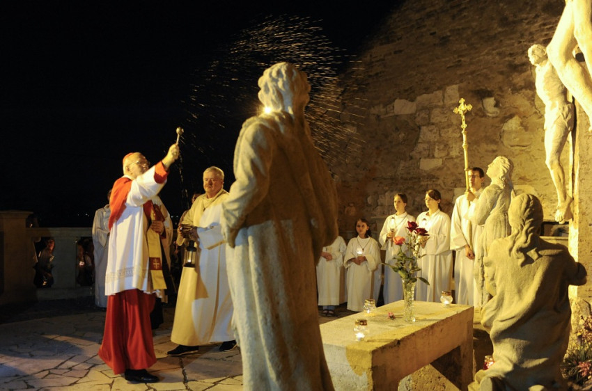 A kálváriát Erdő Péter bíboros, esztergom-budapesti érsek áldotta meg szeptember 14-én este keresztútjárás keretében.