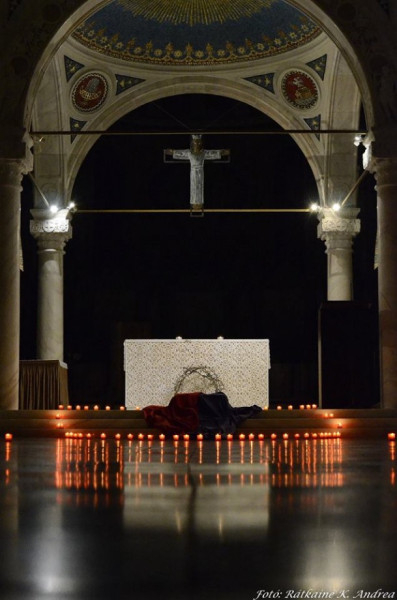 A zarándokok este hét órakor találkoztak a dómban, ahol Köllő Sándor egyetemi lelkész köszöntötte őket és mondott rövid bevezetőt.