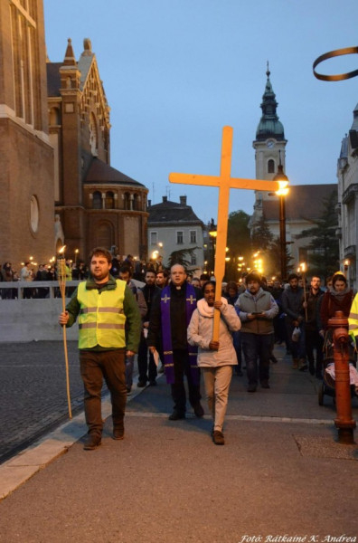 A keresztút résztvevői fáklyákkal kezükben járták végig Szeged belvárosát; egy-egy állomásnál a város különböző keresztény közösségei tartottak elmélkedést. Idén a Szalvátor Ifjúsági Csoport, a CsaládKözPont, a Sík Sándor Kollégium, a Kaszap István Kollégium, a Szent Imre Szakkollégium, a DOM Gyermekkórus, a kórusban éneklő gyermekek szülei, az újszegedi Liget Társulat és a Szent Jeromos csoport, a Karolina Katolikus Egyetemi Szakkollégium, a Szent Gellért Szeminárium, az alsóvárosi és újszegedi Antióchia-csoportok, valamint a Szegedi Keresztény Roma Szakkollégium vállaltak egy-egy stációt.
