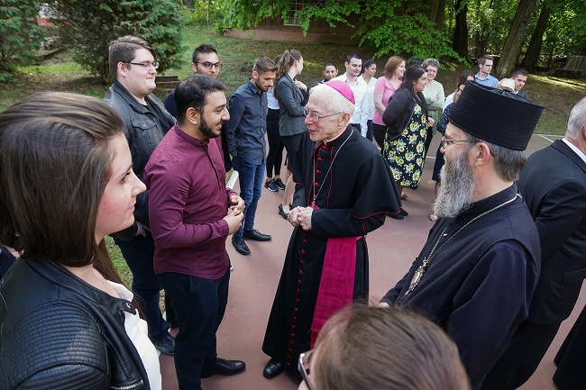 Orosz Atanáz megyéspüspök meghívására újra a Miskolci Egyházmegyébe érkezett Michael August Blume. Az apostoli nuncius először a nevelőszülői hálózatban dolgozókkal találkozott Sajópálfalán, majd meglátogatta a Kenethozókról elnevezett női monostort. Ezután érkezett a Görögkatolikus Roma Szakkollégiumba.