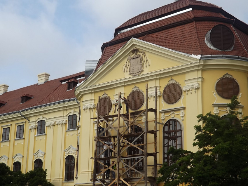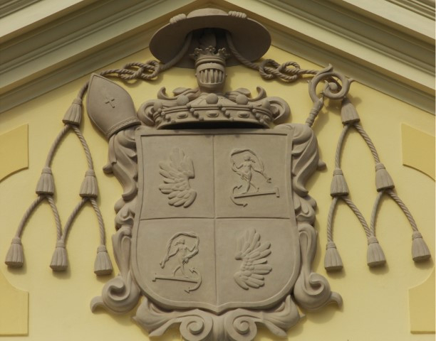 A püspöki rezidenciának és egyben kulturális központnak szánt ingatlant építtető Patachich Ádám püspök címere Fekete Tibor alkotása, amely több hónapos munkával készült el a képzőművész műhelyében.