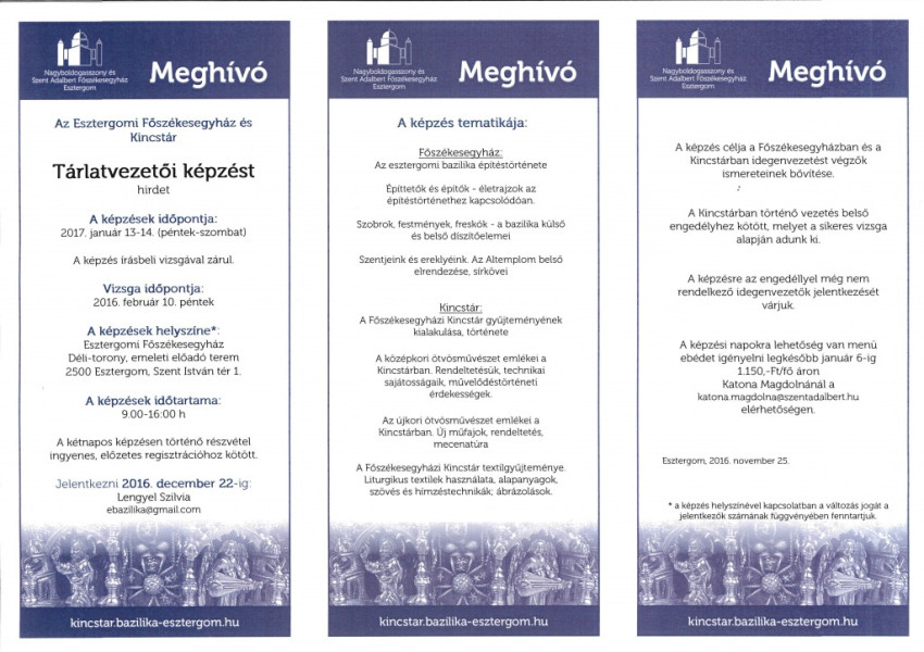 Az ingyenes képzés február 10-én vizsgával zárul. A sikeres vizsgázók jogosulttá válnak önálló tárlatvezetésre a Főszékesegyházi Kincstárban.