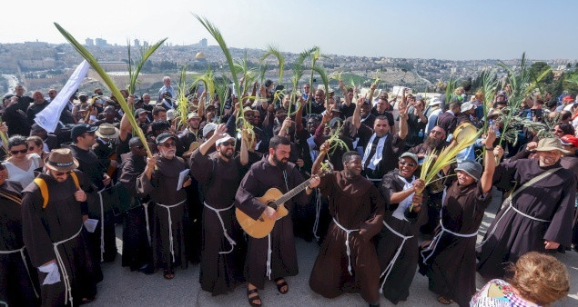 Két éve elmaradt, tavaly pedig csak szerény keretek között rendezték meg, de idén ismét többezres színpompás tömeg vonult be kezében pálmaágakat tartva és hozsannázva Jeruzsálem óvárosába, hogy ezzel emlékezzenek Jézus jeruzsálemi bevonulására virágvasárnapon.