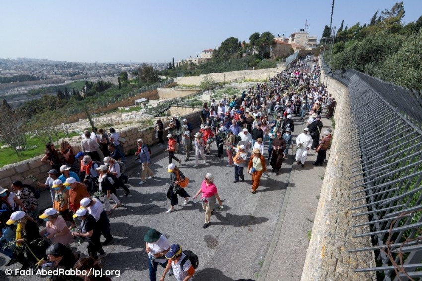 A legtöbben a szentföldi keresztények közül érkeztek Jeruzsálembe, köztük keresztény arab cserkészcsoportok és több keresztény iskola és közösség is menetelt énekelve, dobolva.