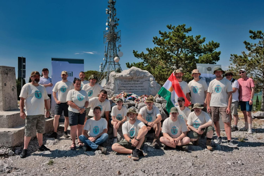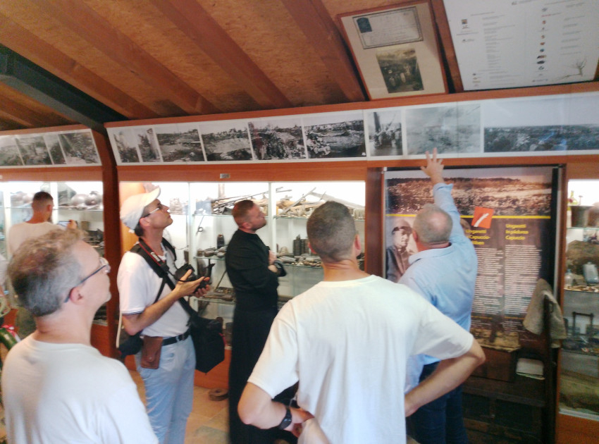 A Monte San Michele megmászása után a „szent zónában” szakmai előadásokat hallhattak a katonák a Nagy Háború Kutatásáért Közhasznú Alapítvány tagjaitól.