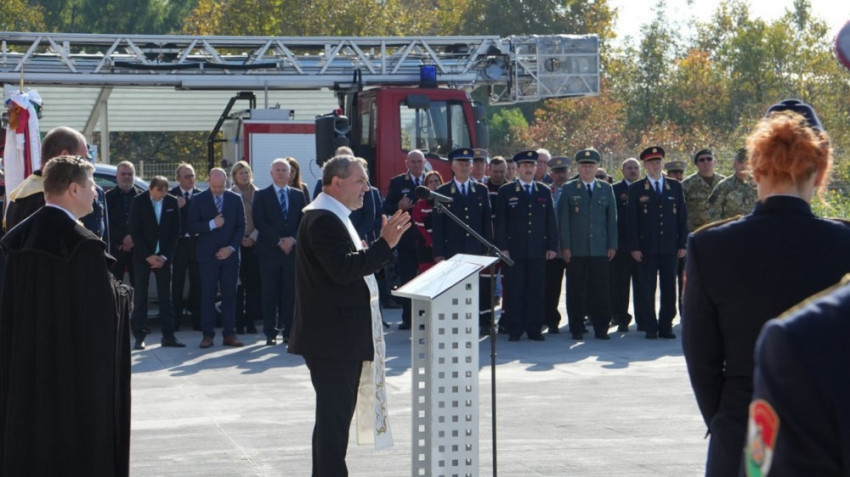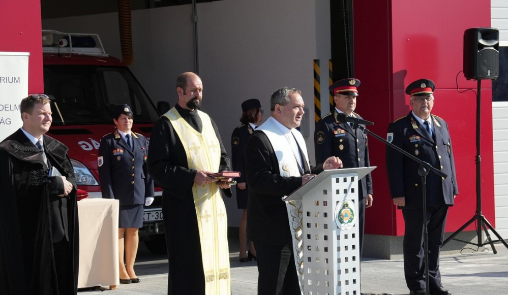 Felföldi László köszönetét fejezte ki a tűzoltóknak áldozatos munkájukért és helytállásukért, majd beszédében kiemelte: a tűzoltók a segítségnyújtás keresztény valóságát élik meg. Munkájuk során nem nézik, hogy kiről, milyen emberről van szó, hová tartozik, mit gondol és érez, arra figyelnek csak, hogy bajban van és segítségre szorul. Isten azt kéri mindnyájunktól, hogy segítsünk annak, aki bajban van, aki rászorul. Mindennapi életünkben is tüzek gyulladnak emberi sorsokban, életekben, és minden azon múlik, hogy vagyunk-e elég bátrak, erősek a tüzet eloltani, a karambolban segíteni, a beszorult helyzetben utat nyitni – fogalmazott a főpásztor, majd az Atya, a Fiú és a Szentlélek áldását kérte az új épületre és a benne dolgozókra, hogy mindig bátor és jó szívvel tudjanak segíteni és helytállni.