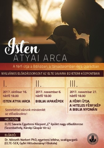 A következő előadást Bibliai apaképek címmel tartja Németh Norbert november 6-án, hétfőn 18 órakor az ELTE Savaria Egyetemi Központ „C” épületének nagy előadótermében (Szombathely, Károlyi Gáspár tér 4.).