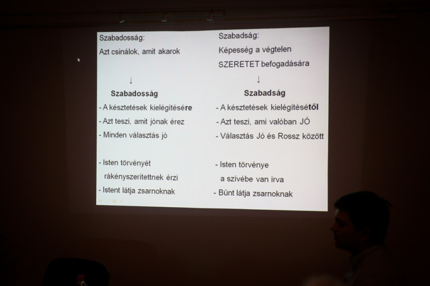 Baráth Évi mentálhigiénés szakember Szent Teréz kulcsszavait kiemelve rámutatott: a misztikus célja az volt, hogy elvezessen minket a várkastély közepén lévő lakásba, ahol Isten és a lélek lakozik. Hogy tudatosuljon, Isten teremtettségünknél fogva bennünk él, és felismerjük, hogyan tudunk együttműködni vele.