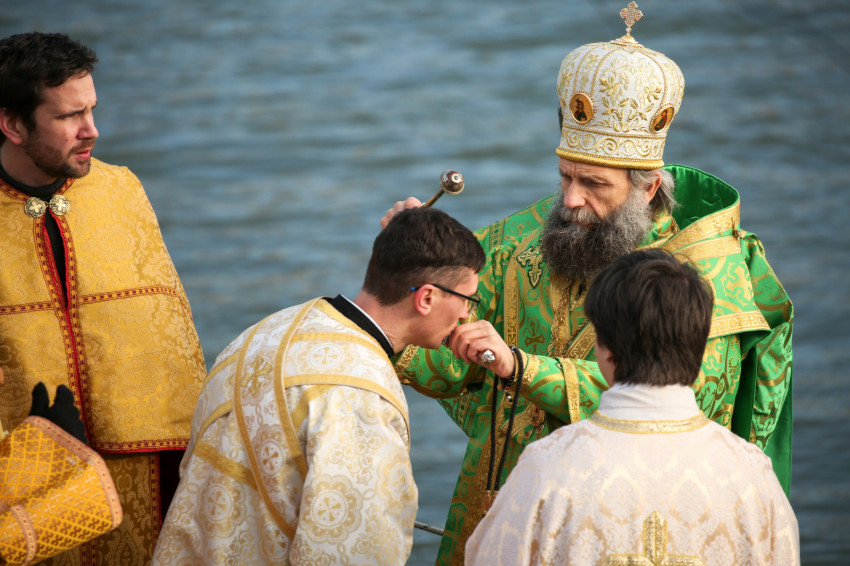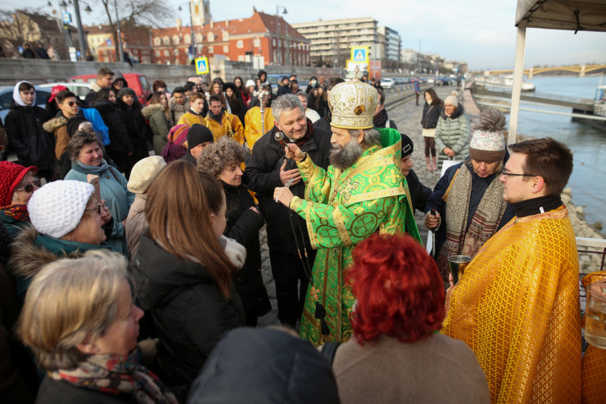 A szent liturgia után a templom papsága és a hívek imádkozva, énekelve levonultak a folyóhoz. Menet közben többször is elismételték: „szentelj meg engem és a vizeket, Üdvözítő”. Kocsis Fülöp metropolita a vízszentelés szertartása után mondott beszédében arra a kérdésre kereste a választ, vajon felfogjuk-e, mi mozgat bennünket tetteinkben. Fölismerjük-e, hogy ki irányítja ezt a világot? Életünk nagy kérdései nem maradhatnak válasz nélkül. Ami vízkeresztkor történik a folyó vizével, az nem pusztán teológiai, hanem az életünket érintő kérdés – fogalmazott a főpásztor.