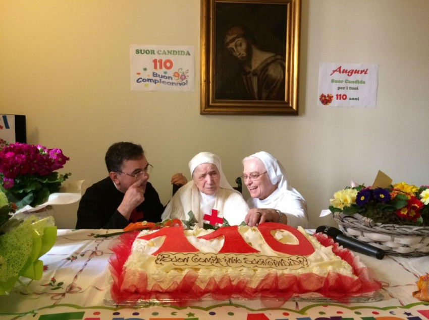 Candida nővér, születési nevén Alma Bellotti nyolcvanhárom évvel ezelőtt tett fogadalmat a kamilliánus nővérek rendjében. Szinte egész életét betegek ápolásával töltötte. 2000-ben költözött Luccába, a kamilliánus nővérek központi rendházába, ahol idén is nagy ünnepséget rendeztek a tiszteletére, hatalmas tortával; ott volt Italo Castellani luccai püspök, Giuliana Fracasso provinciális nővér, valamint rendtársai, barátai, rokonai.