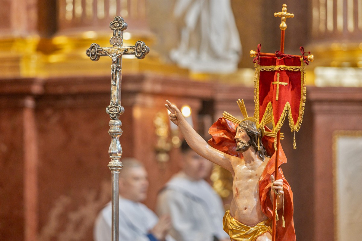 „Kitörő örömmel tölt el bennünket Krisztus Urunk feltámadása és az a tény, hogy ő él. Hitünket alátámasztja, reményünket megnöveli, szeretetünket tökéletesíti – fogalmazott húsvétvasárnapi homíliájában a főpásztor. – Krisztus feltámadása ma nemcsak a halál fölötti diadalnak, hanem a szeretetből fakadó életnek is bizonyossága.” Az ő fénye beragyogja az egész történelmet. Távlatot nyújt azoknak, akik emberileg kilátástalannak látják életüket.