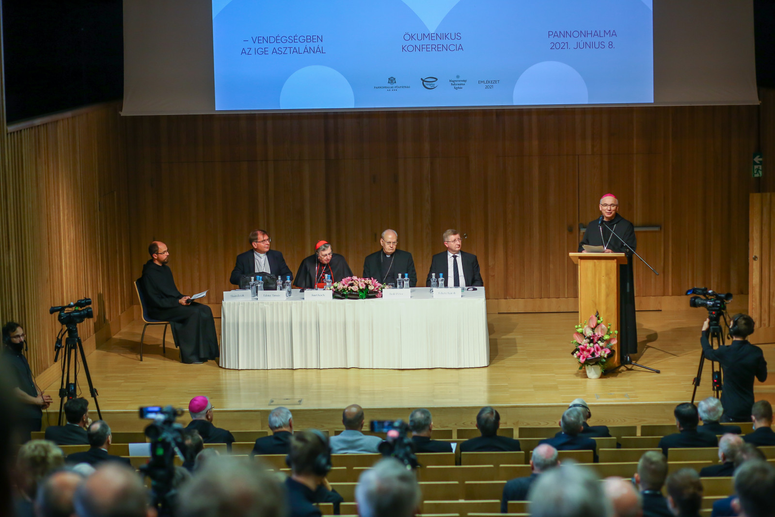 Amikor 1996-ban Szent II. János Pál pápa meglátogatta a bencés közösséget, ezt mondta: „Mozdítsátok elő a keresztények egységét, párbeszédbe lépve mindenkivel”. Egymás meghallgatása teszi ugyanis lehetővé, hogy Isten Szent Lelkére is figyeljünk – zárta köszöntőjét Hortobágyi T. Cirill pannonhalmi főapát.