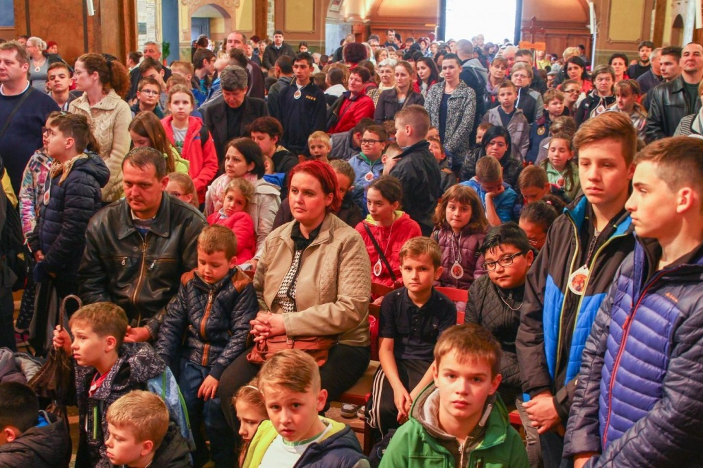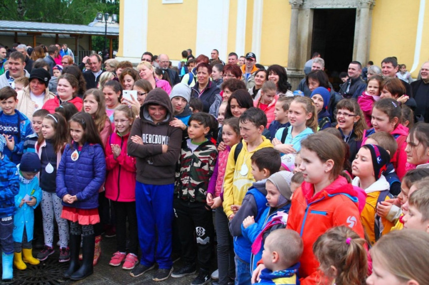 Megtelt a kegytemplom a Szent Liturgiára, amire készülve a résztvevők elénekelték a gyermekbúcsú indulóját. A szertartáson Béres Gábor, a Miskolci Görögkatolikus Általános Iskola lelkésze – szem előtt tartva a találkozó központi témáját és mottóját – kiemelte: Isten gyermekei vagyunk, és meg is kell annak maradnunk.
