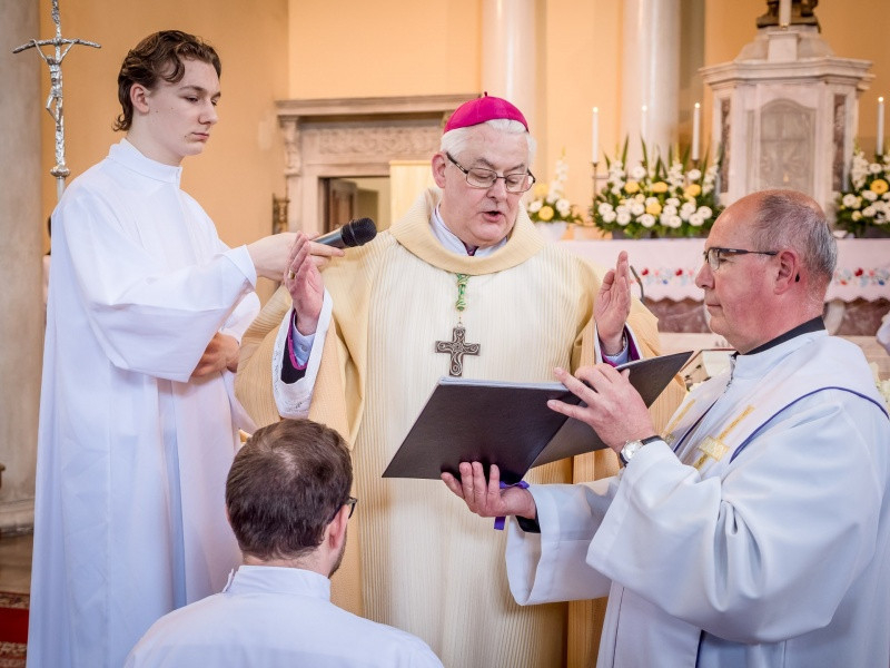 A szentmise részét képező diakónus- és papszentelés szertartása a jelöltek bemutatásával és kiválasztásával kezdődött. Hajdú Ferenc helynök a hagyományoknak megfelelően kérte a megyéspüspöktől a pappá és diakónussá szentelést, a főpásztor pedig méltónak találta a kiválasztottakat az áldozópapság, illetve a szerpapság rendjére.