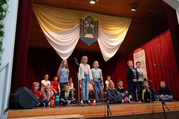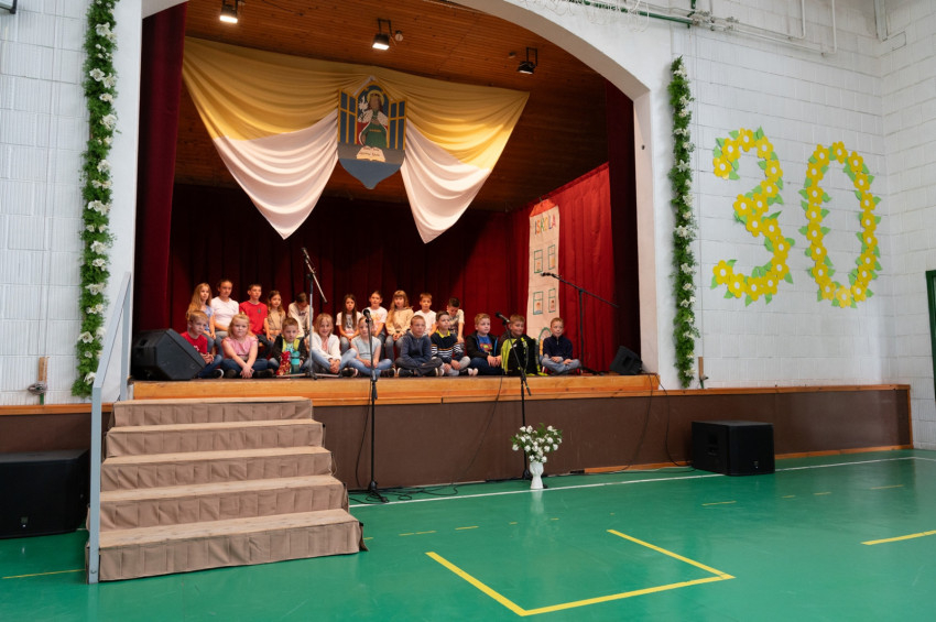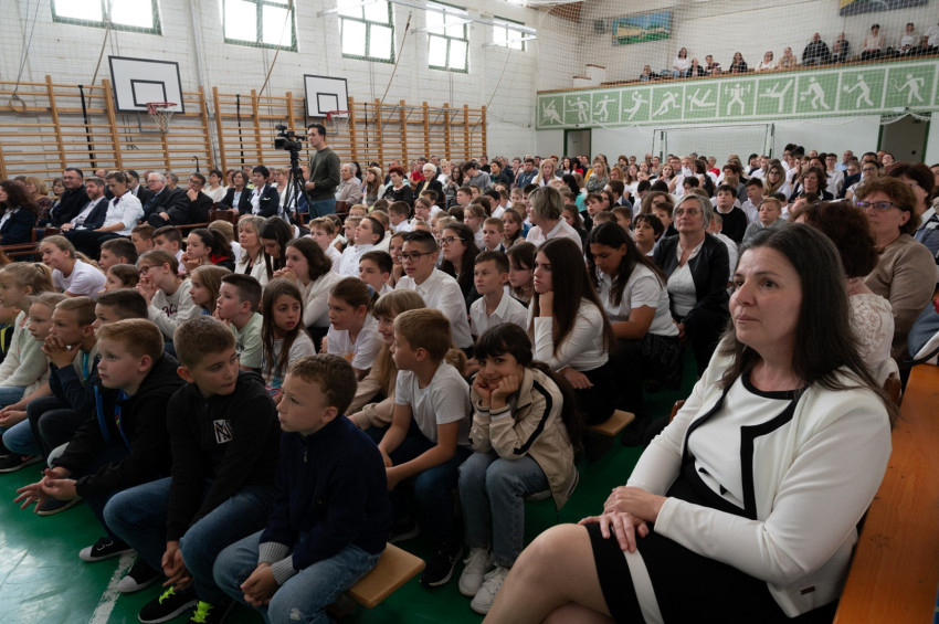 Az iskola tornacsarnokában a diákok és pedagógusok műsora csalt mosolyt a jelenlévők arcára.