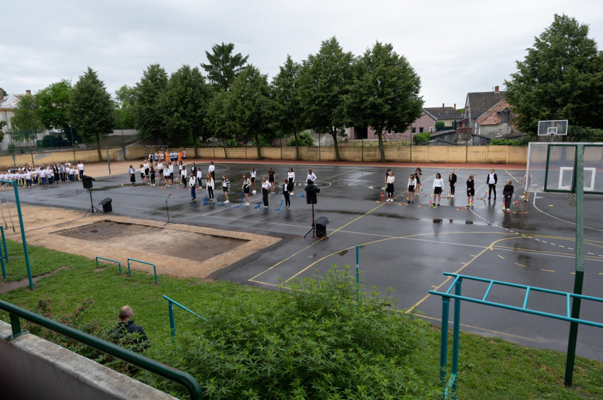 Az ünnepség zárásaként az iskola tornapályáján mutattak be gyakorlatokat a diákok.
