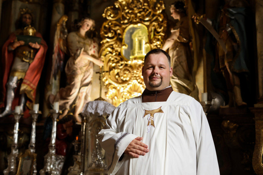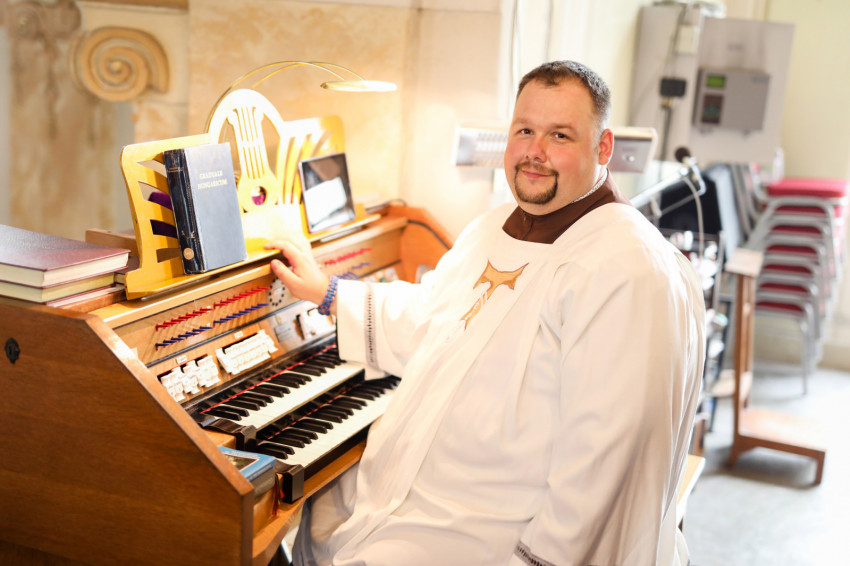 – Itt születtem és nőttem fel Máriabesnyőn, közel a templomhoz. A szüleim nem voltak klasszikus értelemben vallásos, templomba járó emberek. A szomszéd nénink, egy igazi szent asszony hozott el a bazilikába. Ez a nyolcvanas évek végén, a kilencvenes évek elején történt, hat-hét éves lehettem. Nagyon megtetszett a templom, a hely szelleme, a papi ruhák, az arany- és ezüsttárgyak, a kék máriás ruhák, az énekek. Akkor még hét közben is sokan jártak ide, előfordult, hogy harmincan-negyvenen is részt vettek a szentmisén, és mindenki énekelt. Ez nagyon megragadta a lelkemet. Nem kaptam vallásos nevelést, mégis hálás vagyok a szüleimnek, mert mindig a szépre és a jóra neveltek. Mivel látták, hogy érdekel a zene, elektromos orgonát és zongorát vettek nekem. A szobámban apukám segítségével építettem egy házi oltárt, és „miséket” mutattam be, orgonáltam. Egyre többet jártam a templomba, és nagyon érdekelt az ottani orgona. Nézelődtem felfelé, láttam a sípokat, és kérdeztem a szomszéd nénit, hogy mit csinálnak ott. Egyik alkalommal aztán felvitt a karzatra.