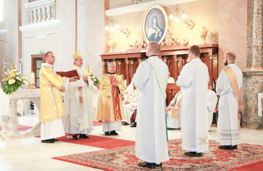 A diakónus- és papszentelés szertartása az evangéliumi rész felolvasása után kezdődött. Név szerint bemutatták a felszentelendőket. Hankovszky Ferenc vikárius a püspök kérdésére válaszolva jelentette ki: a keresztény nép megkérdezése és az illetékesek véleménye alapján méltónak találtattak a felelősségteljes szerpapi, illetve áldozópapi szolgálatra.