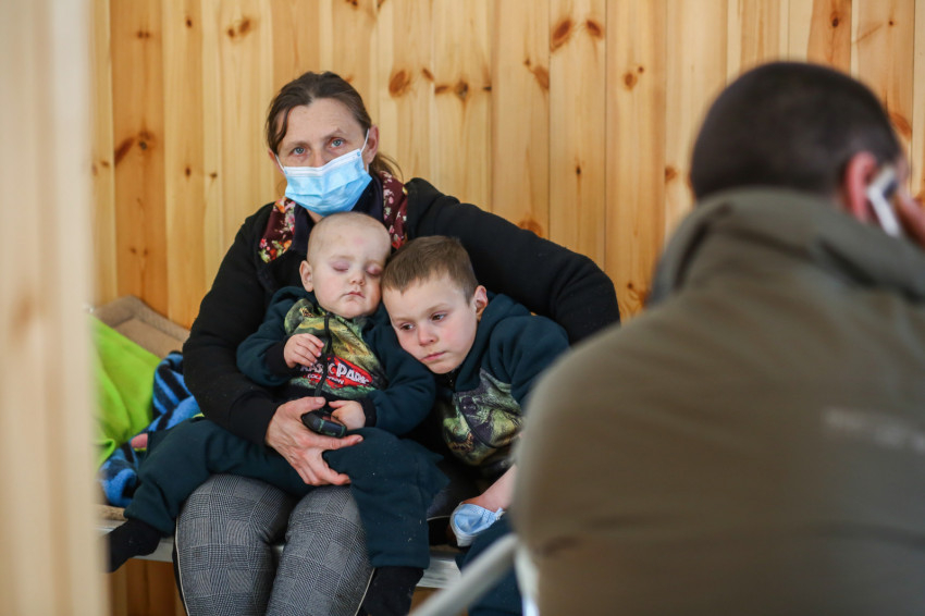 Eközben népes csoport érkezik. Öt gyerek három fiatal nővel. Átfáztak, kimerültek. Ők három család. A férjek szállították őket Kijevből a határra. A férfiak nem tudták, de nem is akarták elhagyni Ukrajnát.