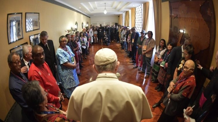 Az őslakos népek – nyelvük, kultúrájuk, hagyományaik, tudásuk és ősi módszereik változatosságával – mindenki számára szolgáljanak figyelmeztetésként, ráébresztve arra, hogy az ember nem tulajdonosa a természetnek, hanem gondozója. E népek a remény élő kiáltásai: ők tudják, mit jelent meghallgatni, látni és megérinteni a Földet; ők emlékeztetnek arra, hogy minden ember közös felelőssége közös otthonunk gondozása. Ha bizonyos döntések azt eredményezték, hogy tönkretettük a Földet, sosem késő megtanulni a leckét, és új életmódot folytatni – figyelmeztetett Ferenc pápa. – A párbeszéd és összefogás által jobban tudatára ébredünk annak, hogy szükségünk van egymásra, és annak is, hogy a környezetre káros viselkedés negatív hatással van az együttélés nyugalmára és könnyedségére. Fel kell ismernünk, hogy az őslakos népek nem szenvedhetnek tovább az igazságtalanság miatt. Azt is be kell látnunk, hogy a fiataloknak joguk van egy jobb világhoz, és ahhoz, hogy hiteles és meggyőző válaszokat kapjanak tőlünk – hangsúlyozta a pápa.