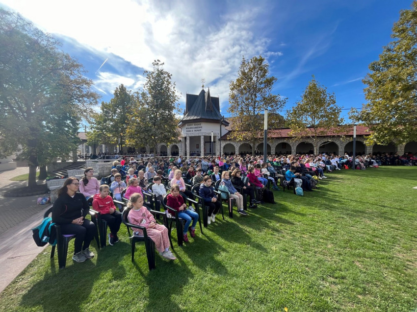 A főpásztor örömmel köszöntötte a hatszáz marianumos diákot és a pedagógusokat, valamint a sárborgádi iskola elsőáldozásra készülő tanulóit.