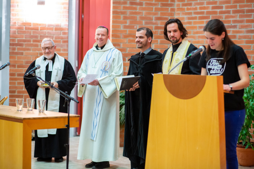 Fábry Kornél esztergom-budapesti segédpüspök; Hafenscher Károly, a Magyarországi Evangélikus Egyház zsinatának elnöke; Hajdú Bálint Kadosa református lelkész, a Misszió Támogató Szolgálat vezetője és Kocsis Tamás görögkatolikus szervezőlelkész, egyetemi lelkész (Dél-Budai Görögkatolikus Szervezőlelkészség) vezették az imát.