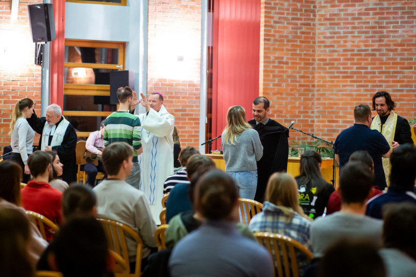 A Szentlelket hívó éneket a Sófár Református Dicsőítő Iskola egyik zenekara szólaltatta meg. A terem megtelt, a fiatalok fokozatosan hangolódtak rá a liturgiára.
