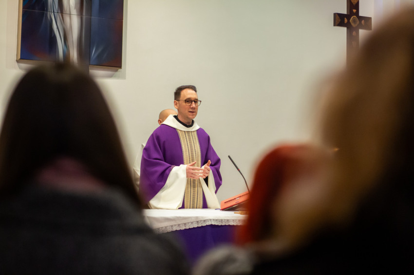 Ezután került sor, immár a Segítő Szűz Mária-kápolnában, a szentmisére, amelyet szintén a jezsuita lelkipásztor mutatott be.