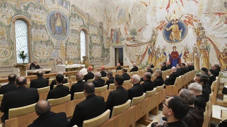 A kapucinus atya hosszú elmélkedésének zárógondolata arra irányult, hogy bevezessen bennünket a Szentháromság titkába. Beléphetünk ebbe a titokban, ha követjük az ikont, melynek közepén a terített asztalon a három személytől körbefogva a kehely mellett ott van a bárány. Ez az Eucharisztia. Hihetetlen misztérium: a Szentháromság asztaltársai vagyunk! Elmondhatjuk Alexandriai Szent Cirillel, hogy miközben testileg magunkhoz vesszük a szentséget, a Fiú fenséges természetének részeseivé válunk.