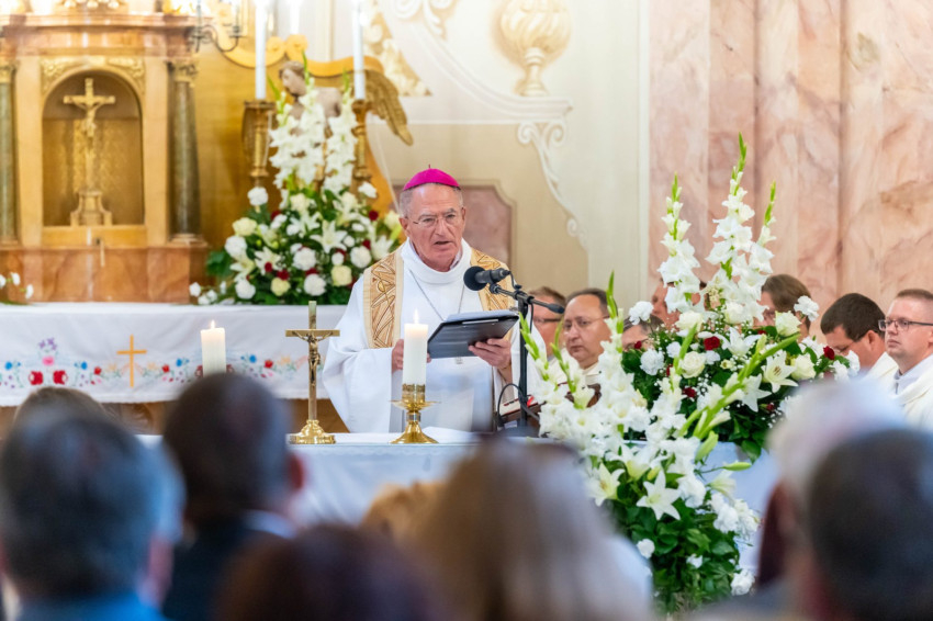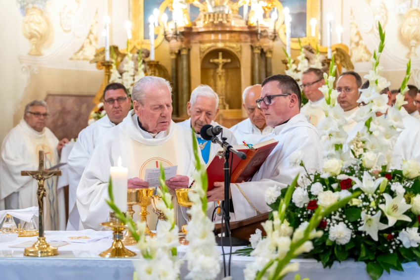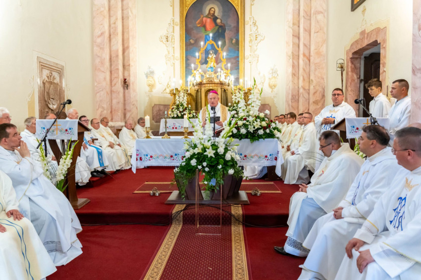 A szentmisén Pápai Lajos nyugalmazott győri megyéspüspök homíliájában Jézus Szentséges Szívének ünnepéhez kapcsolódva a papi hivatás misztériumáról, a hivatás iránti hálaadásról és a papi élet tanúságtévő erejéről elmélkedett.
