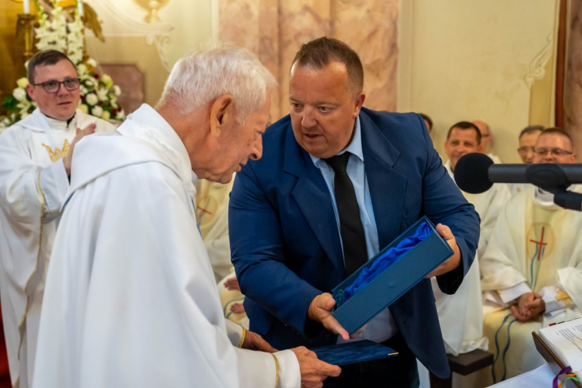 A jubilánst hálával, szeretettel köszöntötte Tódor Szabolcs plébános, megköszönve mindazt a lelki és emberi gazdagságot, amelyet papi szolgálata során közvetített. Felidézte példamutató életét, a nevelésben és képzésben tanúsított igényességét. Köszönetet mondott a közösségért tett fáradhatatlan munkájáért, a közösségi kirándulásokért, a személyes jelenlétért, valamint az idős korában is vállalt élő tanúságtételéért.